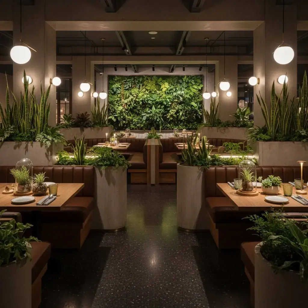 Когда зелёные элементы встроены в концепцию пространства, они усиливают архитектуру, помогают зонировать помещение и создают атмосферу, которую невозможно повторить декором.